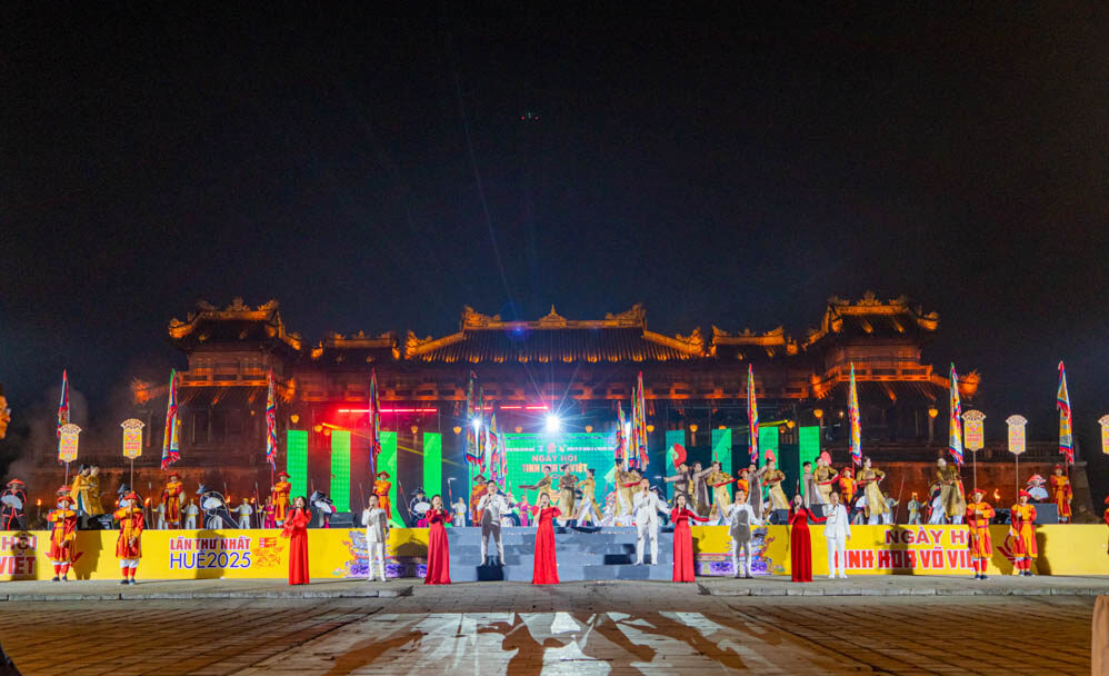 On the eastern side of Thai Hoa Palace, the Royal Army Performance takes place with large-scale staging. Visitors can enjoy traditional martial arts performances such as: